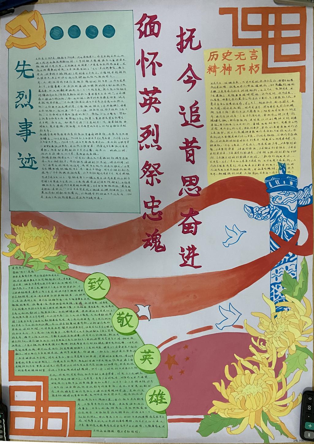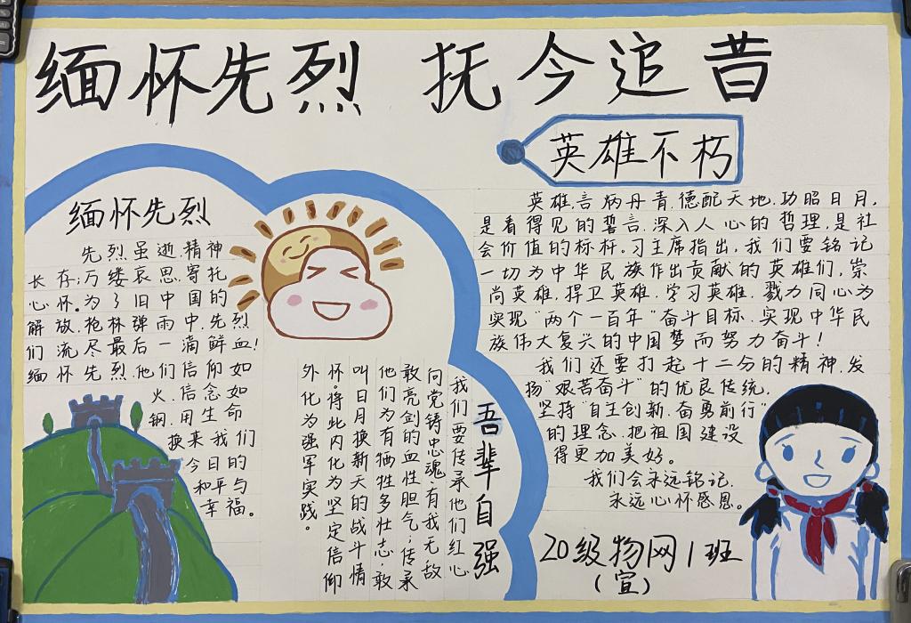 作为百年“闽师之源”,大赢家体育app下载具有优良的革命传统和深厚的红色底蕴,每年清明期间,大赢家体育app下载师生都会祭奠革命烈士和英雄,传承红色基因,激发爱国热情,凝聚复兴力量。在中华民族走向伟大复兴的过程中,有无数的英雄们为了守护国家和人民的安危,以生命赴使命,英勇献身,书写了可歌可泣的故事。本次活动一经发布就引起了热烈反响,各个班级同学积极参与,通过绘制手抄报,海报以及黑板报等方式,抒发自己的爱国情感。