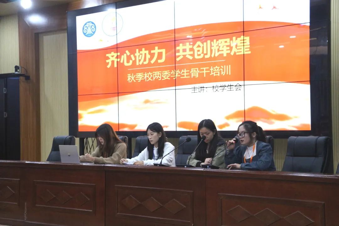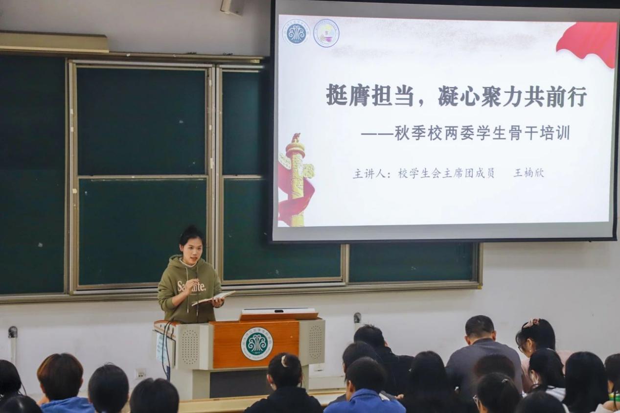 会议伊始,校主席团成员进行了团员和青年主题教育,组织全体学生干部观看了《论党的青年工作》视频,使学生干部对党的认识更加清晰,更加拥护党的号召,坚定不移跟党走。会议第二阶段,各部门主要负责人在会上回顾校园工作,总结工作经验,并提出对未来工作的规划。会议第三阶段,主席团成员王楠欣结合丰富的案例和实践经验,深入浅出地讲解了领导力的重要性和实践方法,同时提出学生干部应勇于担当、自律自控、团结协作,做校园文化的引领者和实践者,发挥榜样作用,担当骨干责任。最后,校团委负责人江秀冬点评及指导了校团委学生会工作,对学生干部提出殷切的期望,希望他们能够以身作则、发挥模范带头作用,强调要提升工作效率,切实为同学办实事,办好事。