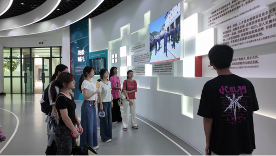 在中国(福建)数字产业公共实训基地,讲解员通过多个鲜活案例,向实践队展示了校企深度合作、精准对接产业需求以及高效技能培训的生动实践。