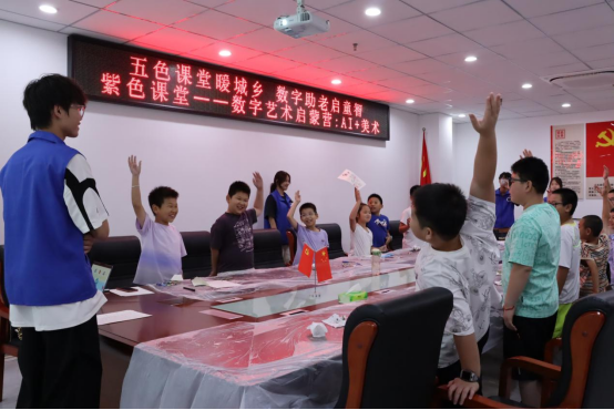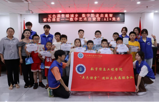 据悉,数字信息工程院结合学生专业所学,组织党员、团员、优秀学生代表进社区、走进乡村开展“五彩课堂”暑期“三下乡”社会实践活动,包括红色革命教育课堂,蓝色科技教育课堂,紫色艺术教育课堂,橙色资助教育课堂,绿色生命教育课堂。“数字艺术启蒙营:AI+美术”课程是我院开展的紫色艺术教育课堂活动之一,后续将继续携手社区,为居民提供更多高质量的服务活动。