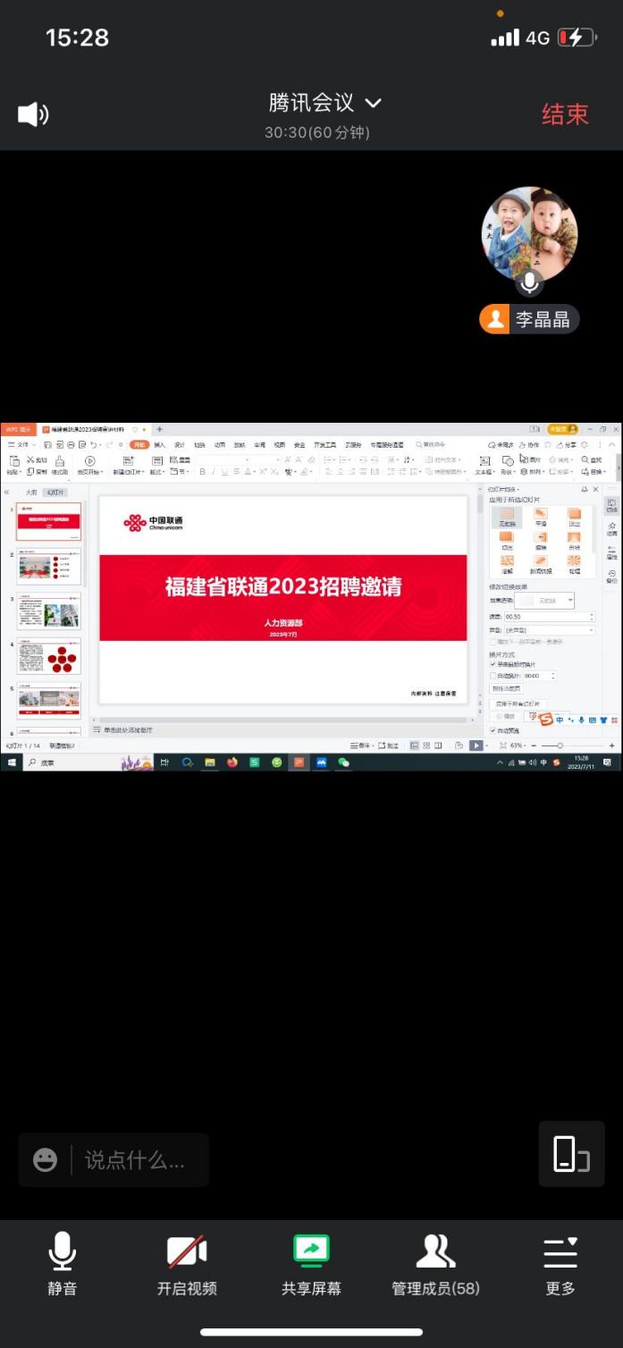 为做好离校未就业毕业生服务工作,满足毕业生的就业需求,促进毕业生尽快就业,我院于7月11日下午邀请了福建省联通钱仙兴主管进行招聘宣讲,本次招聘会采用线上腾讯会议形式,20级未就业学生、21级部分学生参加,李晶晶老师主持了本次会议。