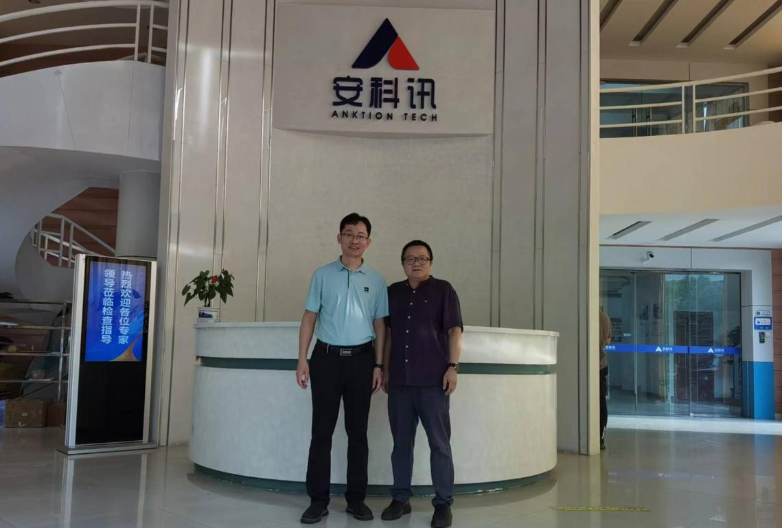 在安科讯(福建)科技有限公司,销售总监程进新带领朱发财院长参观了公司,随后举行了座谈会。座谈会上,双方互相介绍了公司的发展历史和学校人才培养情况,就进一步推进学生实习就业、人才培养等方面展开充分的交流。