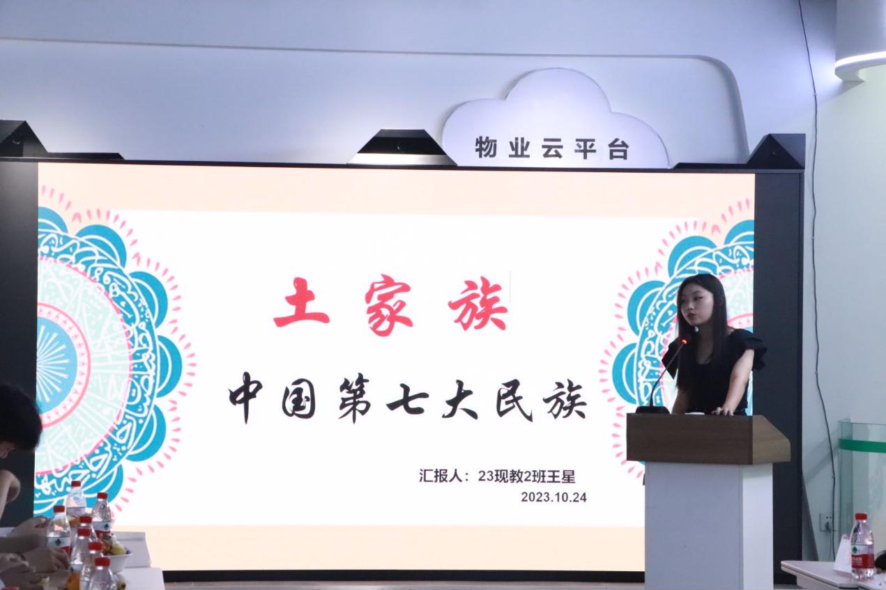 会议伊始,主持人介绍了我院少数民族学生的基本情况,与会同学也一一作自我介绍,正式开启了今天的活动。随后,土家族同学王星、维吾尔族同学艾黑代、布依族同学肖途建、侗族同学张函诵依次向大家展示了自己的民族简况、文化习俗、特色美食等,为在座的师生呈现了一场丰富的文化盛宴。