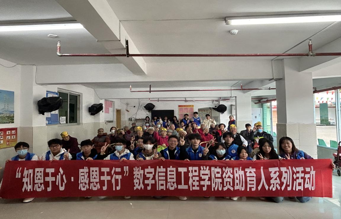 为推动资助育人工作长效发展,加强对受资助学生的励志感恩教育和社会责任教育,献礼百廿校庆。数字信息工程学院于近期组织国家励志奖学金获得者及学生干部组成青年志愿服务队,前往福州鸿儒老年乐园开展“知恩于心,感恩于行”主题资助育人服务活动。