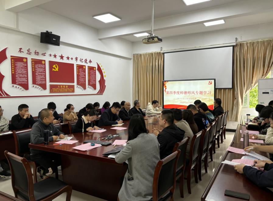 为进一步加强师德师风建设,规范教师执教行为,提高教师的职业道德水平,营造良好的教育教学氛围,近日,数字信息工程学院于2#201B会议室开展第四季度师德师风专题学习活动暨师德承诺书签订仪式。本次活动由数信学院党委陈欣书记主持,全体教师参加。