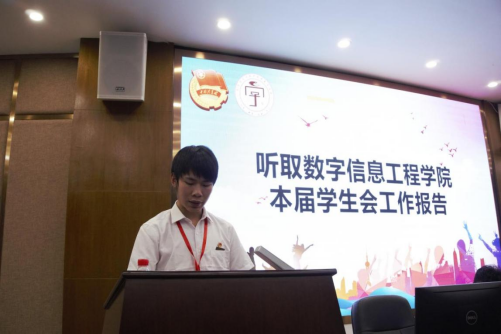 大会在奏唱国歌中拉开序幕。大会的第一个环节是全体代表为已故老一辈无产阶级革命家和革命先烈默哀。随后,江秀冬副书记致开幕辞,他充分肯定了几年来我院团学工作取得的成绩,并寄语团学组织要充分发挥思想引领作用,以身作则服务学生发展,做到工作不掉线、发展有创新、改革有突破。会上,院团委书记傅智群老师向大会作了题为“用青春和智慧谱写共青团工作新篇章”的工作报告,报告就思想政治教育、团干部培养、社会实践工作、网络阵地塑造、创新创业等方面回顾了学院共青团工作,认真总结了工作中的经验与不足,并对今后几年的工作进行了展望,表示将不断筑牢思想防线、完善工作制度、激发青年奋斗精神等工作。院学生会主席吴锐同学向大会作了题为“豪情壮志绘蓝图 稳步前进创辉煌”的工作报告,通过对一年来学生会工作情况的回顾,总结出工作经验,并提出了存在的问题,表示将加强学习、提升效能、提高服务,凝聚青年力量,更好地为同学们服务。