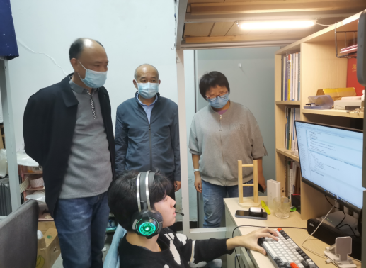 云端课堂,学风同行。面对突如其来的疫情,每个人都无法置身事外。数字信息工程学院高度重疫情防控下学生在校学习生活情况,11月2日上午,学院领导班子成员陈欣、李瑞兴、江秀冬带领教学秘书、全体辅导员深入学生宿舍检查网课情况,并关心关怀学生。