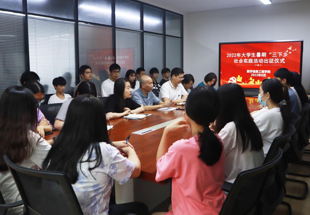 青春心向党,百年再启航。“七一”前夕,数字信息工程学院2022年暑期大学生“三下乡”社会实践出征仪式在仓山校区2-105举行。学院党委书记陈欣、副书记江秀冬,团委书记、全体辅导员,暑期社会实践团队学生代表参加出征仪式。