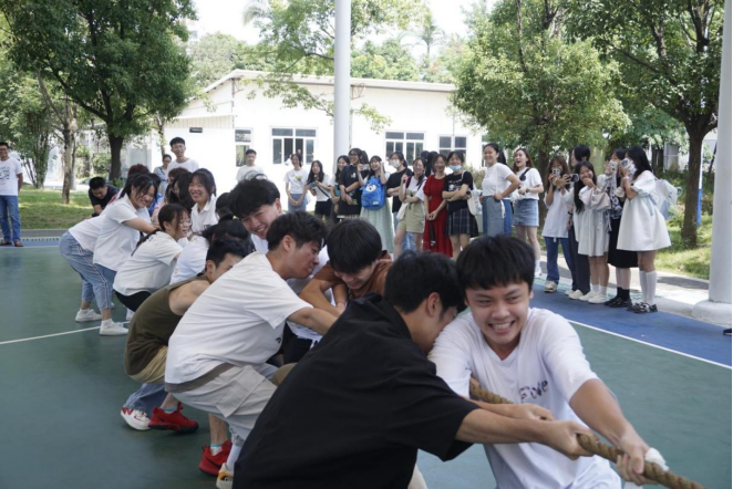 据悉,9月9日,学院还举办了师生趣味拔河活动,师生互动其乐融融,更添节日氛围。首先进行的是学生队伍的拔河竞赛,在嘹亮的口号和呐喊声中,所有队员齐心合作,奋力拉绳,你来我往,都想赢得比赛的胜利。经过激烈的争夺,最终2022级软件专业班获得胜利。随后,“冠军队”也与教师代表队进行友好切磋,并笑到最后,赢得胜利。友谊第一,比赛第二,在场师生共同分享欢乐与零食,为活动划上圆满句号。