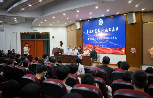 愿此去繁花似锦,再相逢依旧如故。为了增强毕业生的母校情结和感恩意识,让他们再次感受母校的关心,学院的嘱托和老师们的叮咛,6月15日晚,数字信息工程学院举行了2022届毕业典礼。典礼采用线下学生代表参加、线上多平台全程直播的方式进行,近一千人次通过视频直播平台观看了“云典礼”。校党委副书记林旻,数字信息工程学院党委书记陈欣、院长李瑞兴、副院长冯光、副书记江秀冬,全院教职工,150余名毕业生代表,20、21级学生代表在现场参加。