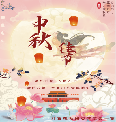 且喜人间好时节,又到一年中秋月圆时!为坚决守住校园疫情安全防线,今年中秋节,计算机系师生积极响应号召,就地过节,在符合防疫要求的前提下,线上线下自主开展了以“月是故乡明,饼表思亲情”系列丰富多彩活动,让全系师生在中秋节这个团圆的日子里,少了小家欢聚,多了大家团圆。