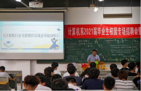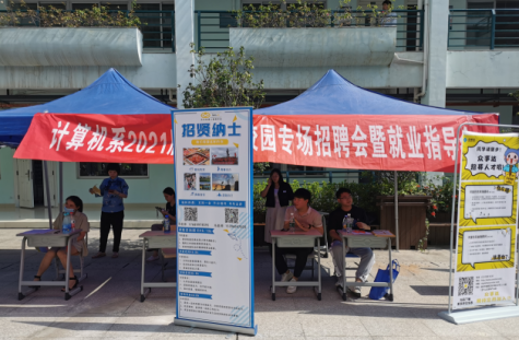 根据党史学习教育“学党史,悟思想,办实事,开新局”的总体要求,为进一步促毕业生充分就业、高质量就业,切实帮助毕业生解决急难愁盼问题,体现学史力行的要求,6月10日下午,计算机系顺利举办2021届毕业生线下招聘会暨就业指导培训活动。先后邀请计算机系王华副主任、冯光副主任及相关就业导师仓山校区2#104为全体毕业生在举办了线下就业指导培训,并邀请了14家专业对口企业在仓山校区青春广场进行展位招聘。