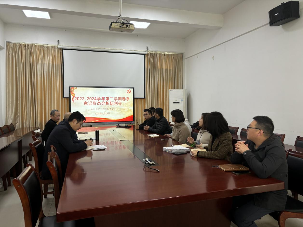 近日,我院在仓山校区2#201B召开2023-2024学年第二学期意识形态分析研判会,会议由院党委书记陈欣主持,朱发财院长及各教研室部门负责人及代表人员参会。
