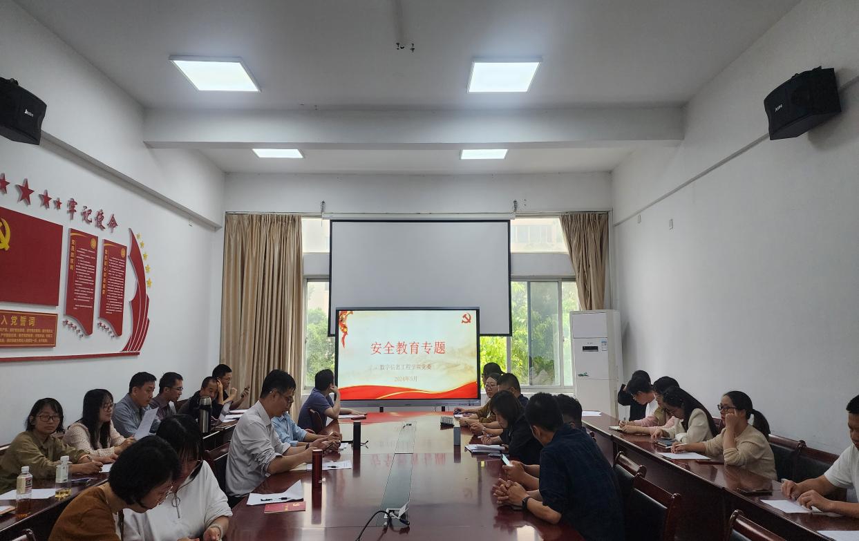 5月27日下午,数字信息工程学院召开安全工作会议,深入学习习近平总书记关于安全工作的重要指示精神,重点对学院5月份安全检查工作中排查出的问题进行了通报,并对学院安全工作进行了布置。学院党委书记陈欣、院长朱发财、副院长冯光、党委副书记董秋锋以及全体教职工参加会议。