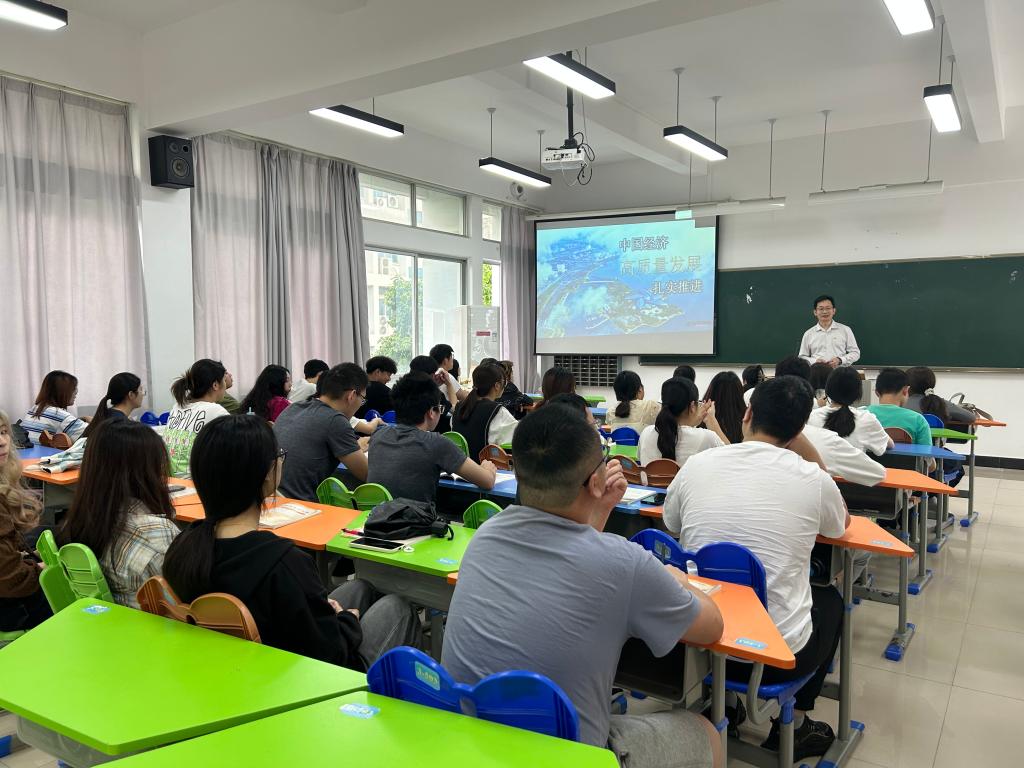 朱发财院长以《中国经济高质量发展扎实推进》为主题,通过时事热点导入,结合自身经历阅历,围绕回升向好韧性强、全面长远辩证看、多措并举提质量三部分内容,运用丰富案例、视频使学生认识到了当前我国经济的深刻变化,明确了实现高质量发展的重要意义,增强对我国经济高质量发展的信心。