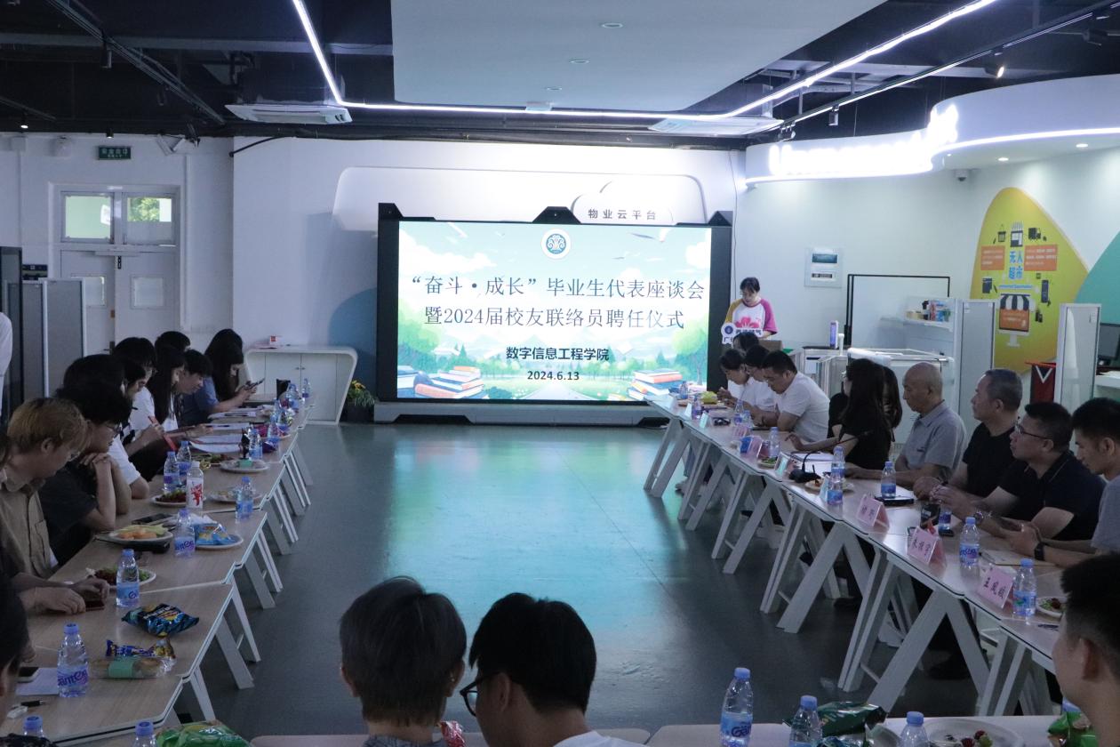 近日,数字信息工程学院在仓山校区2-305教室举办“奋斗•成长”毕业生代表座谈会暨2024届校友联络员聘任仪式。学院党委书记陈欣、副院长冯光、党委副书记董秋锋、综合科科长范玉婷、各教研室主任、毕业班辅导员及毕业生代表参加本次活动。