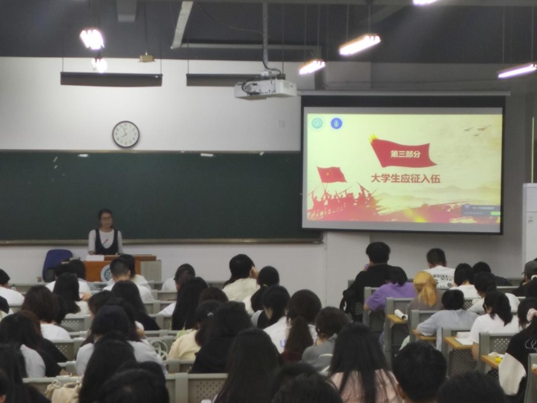 此次主题教育活动,辅导员老师们从“什么是国防”、“致敬最可爱的人”、“大学生应征入伍”等多个方面展开讲解,着重讲述了培养家国情怀和增强国防意识的重要性,并详细介绍国家征兵政策、入伍条件及流程等内容。鼓励同学们积极参与大学生应征入伍,为实现中华民族伟大复兴的中国梦贡献青春力量。