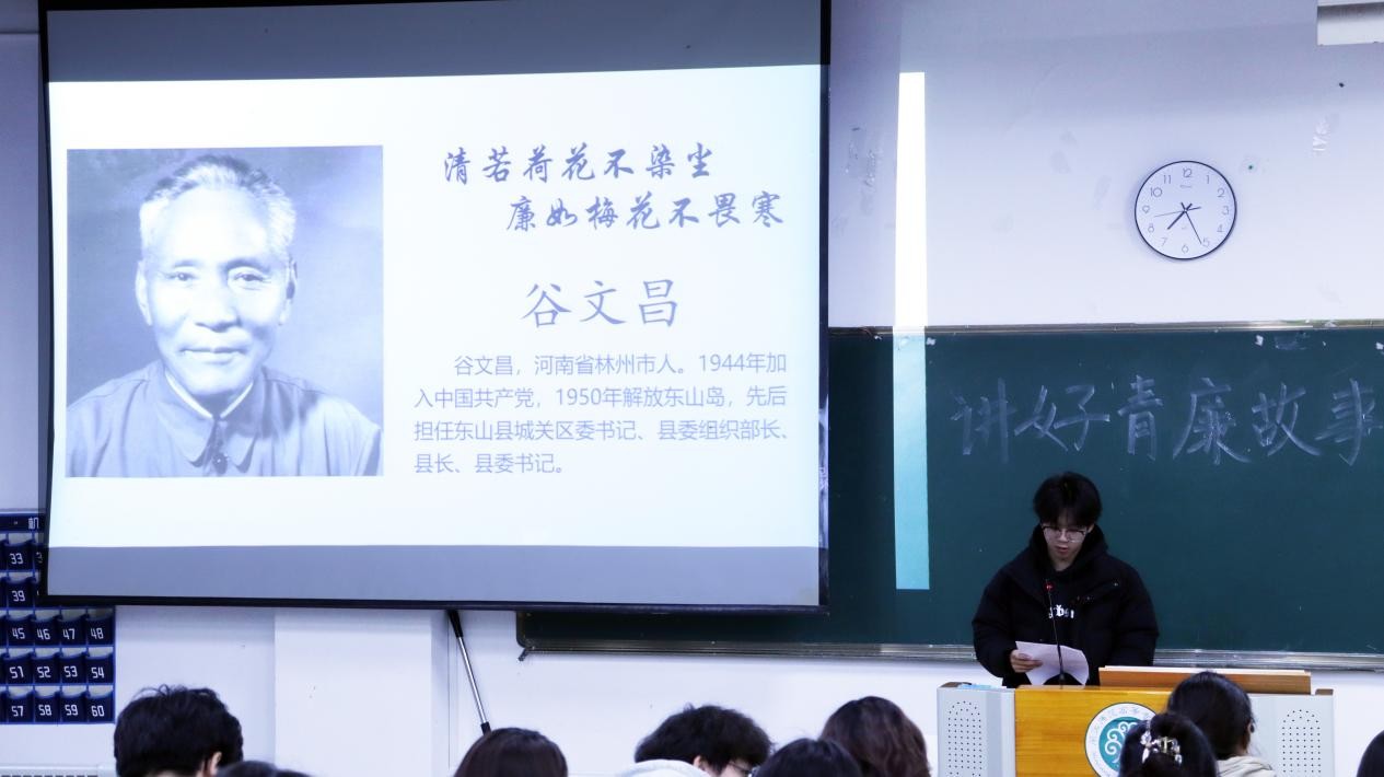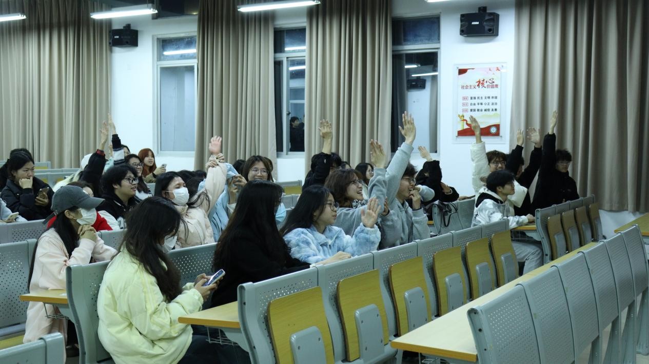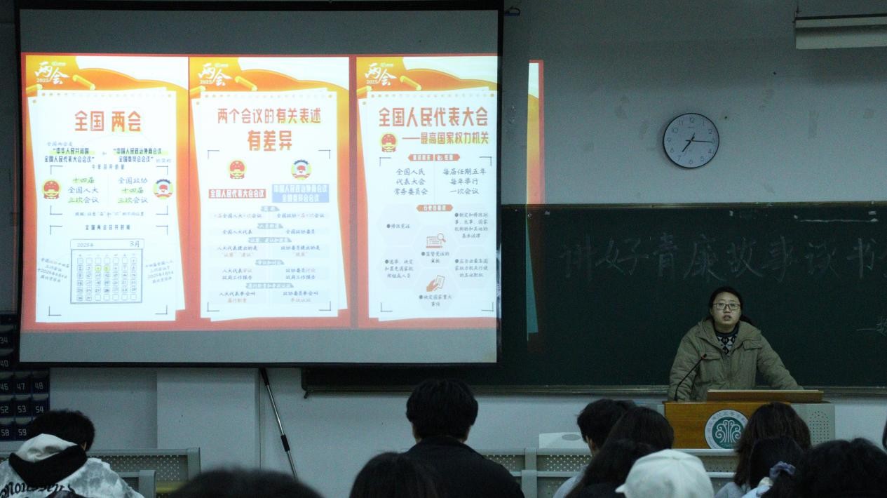 活动伊始,李晶晶老师向大家普及了关于全国两会的相关知识。随后活动进入第一环节,她讲授廉洁主题团课。首先,通过播放一个彝族故事的廉洁动画视频引出本次活动的主题,告诉大家在有权力的地方就有可能会产生腐败,接着列举了在学生干部中常出现的三个典型案例,详细地讲述了学生干部不作为、不公正、徇私舞弊的腐败行为,号召青年学生干部要行使好手中的权力,珍惜好权力,以身作则,发挥好学生干部的榜样作用,强调身为学生干部要杜绝一切腐败。活动进入第二个环节,第七期青马学员代表陈波和林若莹讲述了关于谷文昌和焦裕禄的故事,谷文昌工作笔记上的那句“不带私心搞革命,一心一意为人民”,就是对正确政绩观的最有力注脚。焦裕禄始终把群众利益放在首位,从不利用职务谋私利,他拒绝家人通过关系安排工作,坚守廉洁底线。通过两位青马学员绘声绘色的宣讲,参会人员懂得了应向谷文昌和焦裕禄学习,以身作则,发挥好学生干部的榜样作用,做一个廉洁修身的学生干部。在第三个环节,工作人员播放了《一廉如水》和《收与守》两个廉洁微视频,并进一步解读视频中所提倡的廉洁观。视频结束,进入廉洁知识抢答环节,参会人员积极踊跃抢答,将气氛推向了高潮,正确的回答引发阵阵喝彩。活动尾声,团委工作人员带领大家一同制作廉洁书签并分享本次读书交流分享会的心得体会。