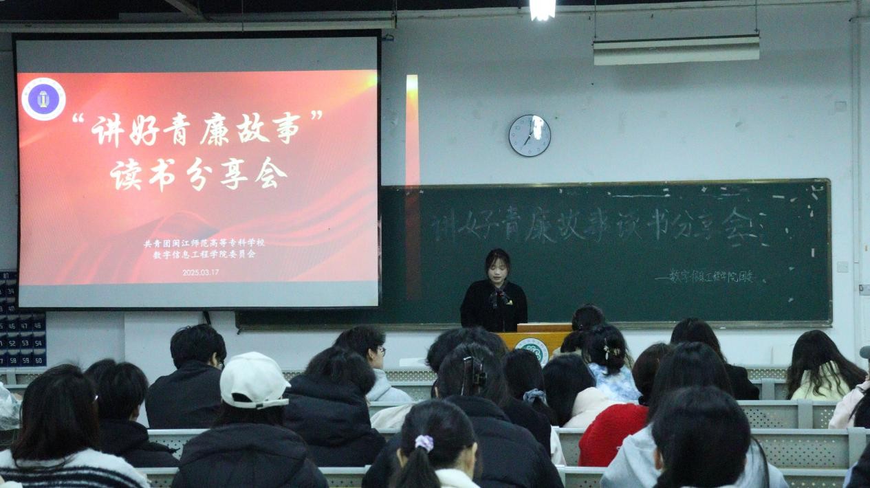 2025年3月17日,数字信息工程学院团委在仓山校区3号楼104开展了“讲好‘青廉’故事”读书分享会,团委指导老师李晶晶、第七期青马班学员以及全体团支书参加了本次活动,活动由院团委副书记徐钰灵主持。