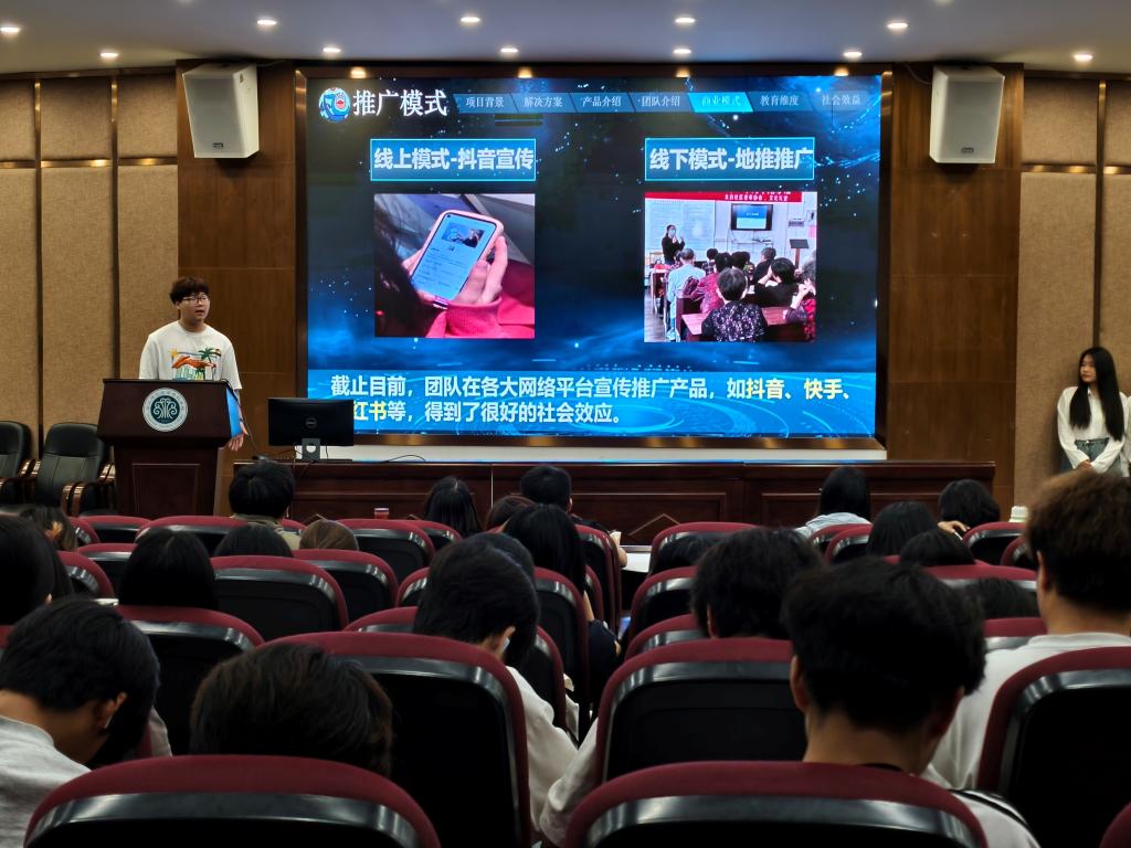 本次比赛共有11个项目团队进入决赛,各参赛团队通过演讲和PPT展示的方式从项目背景、市场分析、技术创新、团队成员、未来规划等方面展开详细阐述,评委老师围绕教育维度、创新维度、团队维度、商业维度、社会价值维度等要点进行专业的点评和分析,并提出了修改意见。经激烈角逐,本次大赛最终产生了一等奖1项、二等奖3项、三等奖6项。