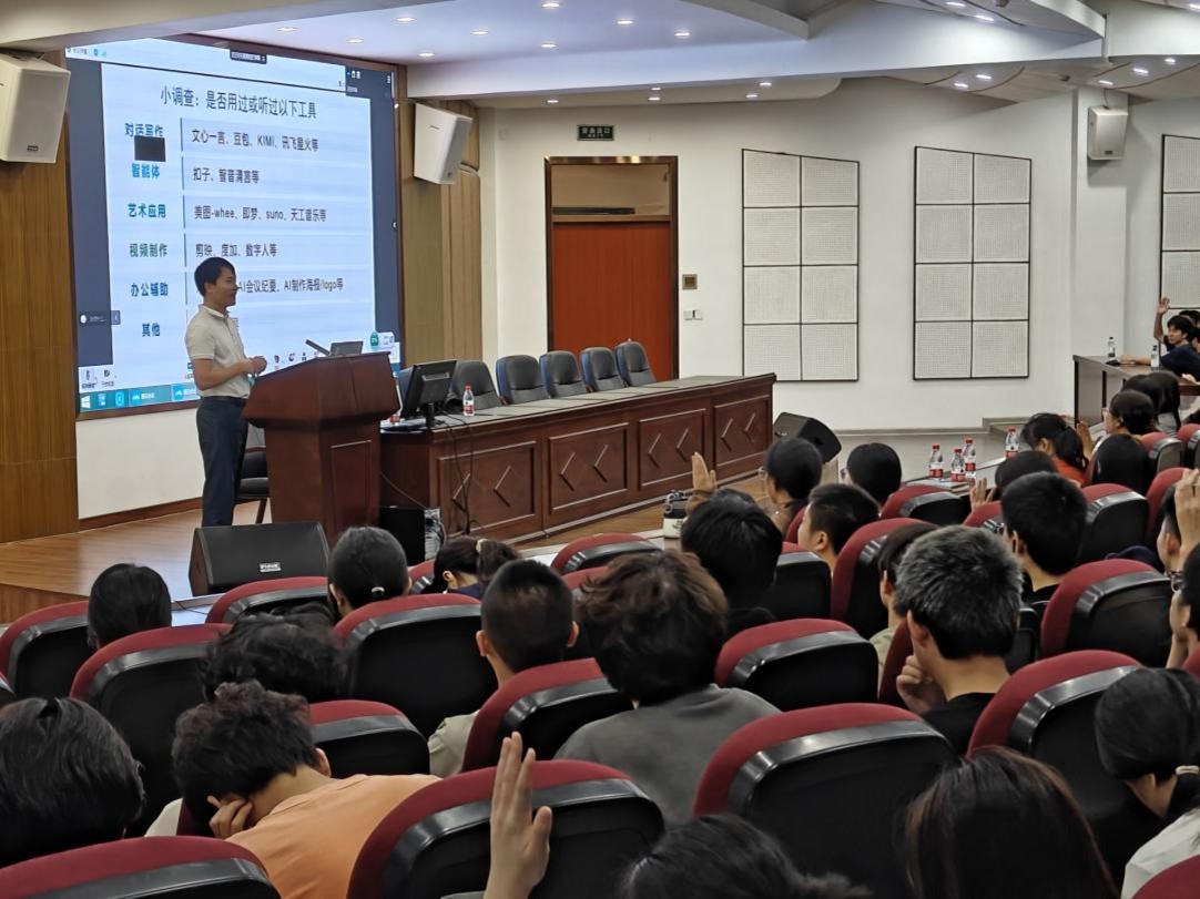 会上,省劳模何学智从自身擅长领域“人工智能、深度学习、时间序列”展开,直观地向大家介绍了AI技术和时间序列数据建模分析,全面分享了人工智能领域的发展历程及其未来发展方向。随后,他为全体师生讲述“匠人匠心”行业故事,用劳模工匠的奋斗故事,激励同学们在动手实践、出力流汗中接受锻炼、磨练意志、掌握技能、报效祖国。最后,在问答环节中,他结合自身奋斗经历,悉心与学生交流分享,对学生的未来发展提出宝贵的建议。