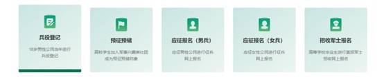 注意:有些小伙伴看到这么多的菜单就有些懵了,其实不用紧张,如果你是第一次来的男生,直接从“兵役登记”进入页面就可以了;否则就从“应征报名(男兵)”进入页面;如果想报名招收军士,就从“招收军士报名”进入页面,不过,今年的招收军士貌似还没开始。
