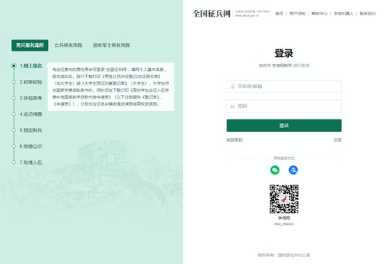 参军入伍请认准全国应征报名唯一官方网站全国征兵网https://www.gfbzb.gov.cn/,或者扫描二维码进入全国征兵网报名。
