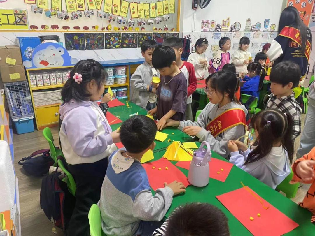 在活动中,志愿者们充分发挥自己的专业特长,向孩子们展示了折纸艺术的魅力。他们亲手示范五星红旗的制作过程,耐心指导孩子们进行折纸操作,让孩子们在动手实践中感受到了传统文化的魅力。同时,志愿者们还结合医护知识,为孩子们讲解了日常生活中的健康小常识,帮助他们养成良好的卫生习惯。