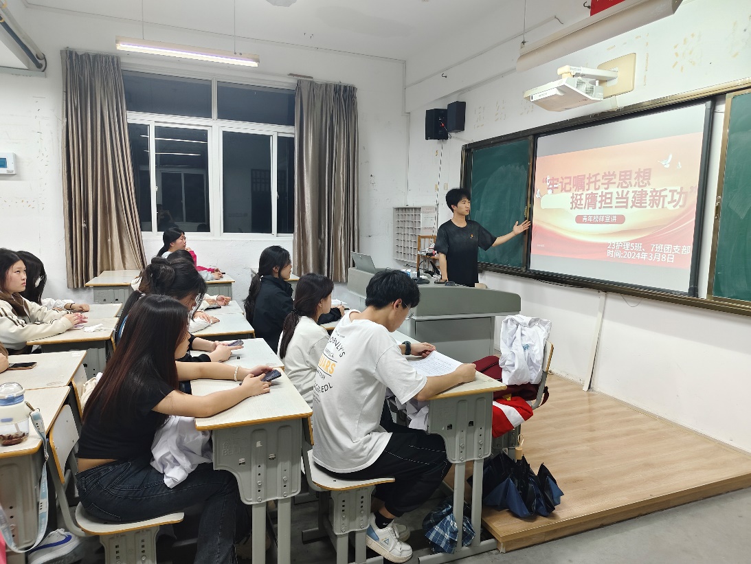 为了提升青年学生学习拼搏进取、吃苦耐劳的青年精神,把学习成果转化为日常学习生活中的不竭动力。培养青年学生面对困难乐观、自信坚韧不拔的品格。彰显团结互助、扶贫济困的关爱精神。2024年4月2日晚上,23护理5班和23护理7班团支部成功开展团干分享事例团日活动。