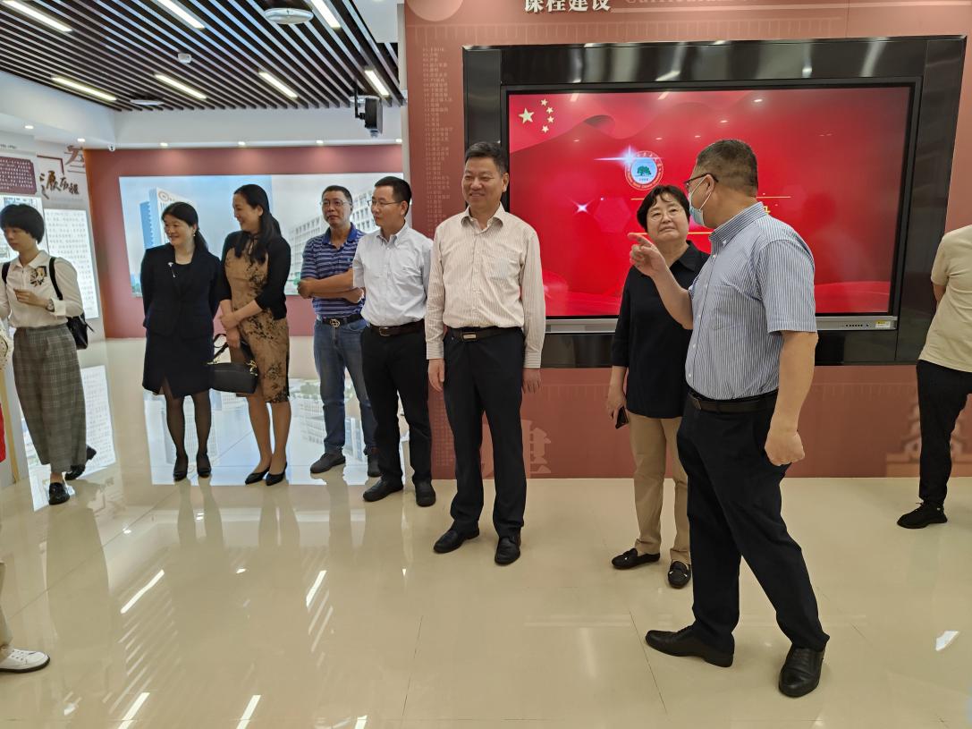 何静彦带领考察学习组一行,参观了市老年大学校史馆、影视厅、VR教室、书画教室、美妆教室、医学教室、茶艺教室、民乐教室等,介绍学校先进的软硬件设备和办学理念。