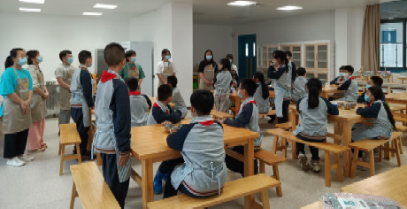 《义务教育劳动课程标准(2022年版)》中,对中小学生不同学段提出了不同的劳动要求,其中特别明确学生要学会烹饪帮厨,本次活动正是加强职业启蒙教育,向下融入义务教育的一次创新尝试,不仅提高了我院学生的职业素养,培养他们与学生沟通的能力,同时也把职业启蒙的种子洒向附小学生的心中。