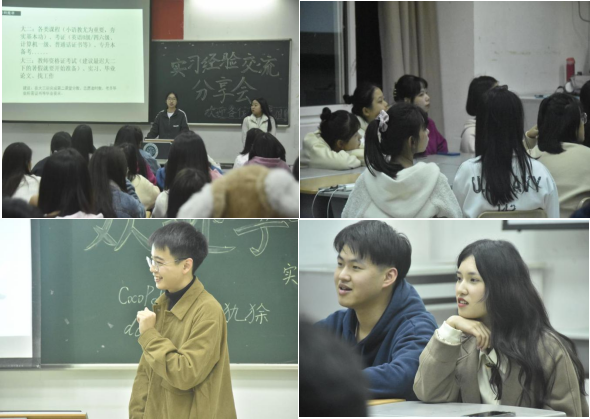 在20、21级同学们求知的目光中,学长学姐们通过分析在实习过程中的经典案例、实习中得出的经验等等来为同学提供学术指导,也为同学们解决了心理困惑。在自由提问阶段,大家就如何编写教案、如何掌握高效率学习方法以及在学习过程遇到方方面面的问题如何解决等等问题向学长学姐寻求意见建议,学长学姐们耐心的为同学们做了解答,并且还向同学们分享了各种学习资料,例如常用的教育类网站、公众号,常用的免费PPT、简历模板等等,为同学们在迷茫中点亮了一盏明灯。最后,在各班班导师的总结下,“话实习心声,言未来理想”实习经验交流会圆满落下帷幕,定格成一张纪念照,给同学们的学习生涯留下了浓墨重彩的一笔。