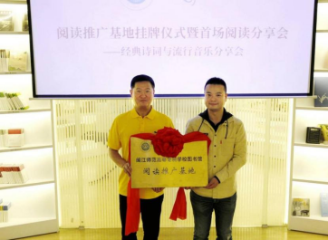 阅读分享会伊始,在邱信洁老师的主持下,在各个领导的见证下,进行了大赢家体育app下载图书馆鹿森书店阅读推广基地挂牌仪式。