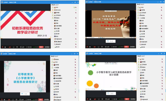 为全面推进高校课程思政建设,发挥好每门课程的育人作用,提高人才培养质量,初教系于3月12日中午十二点线上开展课程思政优秀教学设计研讨会议。此次会议由张宁主任主持,全系教师参加。