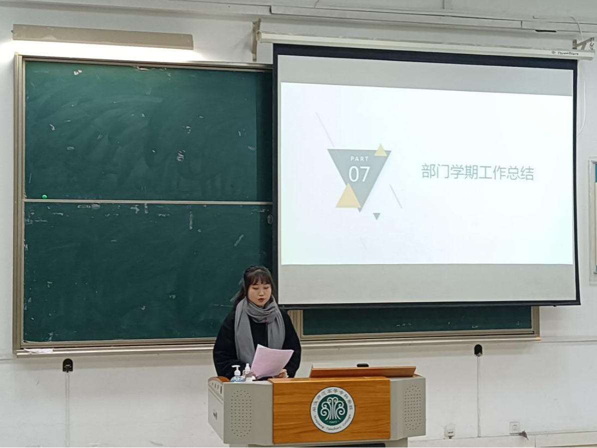 竞选环节结束,初教系三委干部一并召开了本学期第六次例会,本次例会三委各部门针对本学期工作进行系统总结。随后,我系副主任陈淑华老师肯定并鼓励了三委干部的工作,也感谢全体成员的辛苦付出。