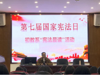 2020年12月6日晚6:30,辅导员卓龙锋老师在仓山校区学术报告厅进行了主题为“传承宪法精神,创建法治校园”的晚点名,初等教育系19级语文教育与数学教育专业全体同学参与其中。