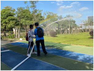 此次消防演练分为正确使用灭火器和消防栓操作两部分。讲解完后,学生积极热情地参加演练,这次仿真演练提高了学生的基础消防技能和安全意识,让抽象的消防安全变成具体的操作实践,使学生和老师对消防器材有了更深的了解。最后,黄耀荣副校长对此次的消防实操演练活动进行了总结,表扬了在演练活动中做得好的同学,并强调发生火灾时要沉着冷静面对,做好及时报告和逃生的准备,提高防火逃生能力。