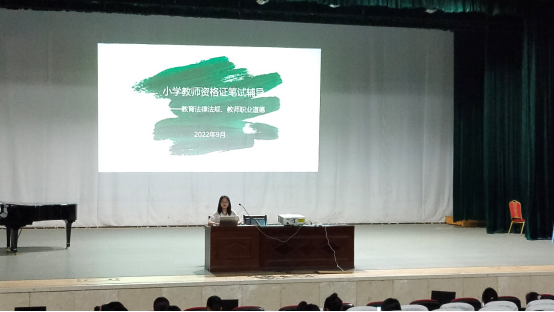 依据我院国家教师资格证考前辅导安排,从9月19日至9月21日三天,总共已开设8场专题辅导讲座,希望通过教师的辅导能为全校师范生的教师资格证考试保驾护航。9月19日下午14时,小学教师资格证“教育教学知识与能力”心理学专题第一讲在综合楼大礼堂举行,由教育与心理教研室主任王芳老师主讲。王芳老师讲座内容紧扣考试大纲,清晰展现国考中心理学考核的知识结构,并结合多年收集的考试真题,生动分析考核知识点;她还分享心理学答题的注意事项和答题技巧, 让大家对教师资格证考试过程及考试形式有了更深入的理解,为迎战教师资格证考试打下了坚实的基础。其他老师也根据考试需求,结合自己多年的教学及丰富的主考官面试经验,从学生角度出发,帮助学生更好提高考试通过率。