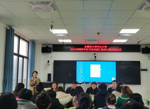 “但见时光流似箭,岂知天道曲如弓”,闽江师专实习生于永泰县大洋中心小学的实习生活迎来了尾声,为全面总结实习工作经验,分享实习期间的成长经历,进一步提高实习教师的专业素养,大洋中心小学于2022年12月7日举行“2022年闽师专实习生总结汇报典礼暨欢送仪式”。