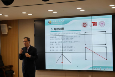 最后,福建师范大学王长平校长为“陈景润学社”的第一批学员做题为《数学思维培养之我见》的开场讲座,讲座围绕三个经典有趣的数学问题:九宫格幻方、七桥问题、勾股数展开。从问题的实际背景说起,娓娓道来,激发孩子们的好奇心,让孩子们感知生活中的数学;接着,他用有趣的方式引导孩子们从这些生活实际去发现数学问题,建立数学模型;最后,指导孩子们用数学方法去解决数学模型,从而解决生活问题。