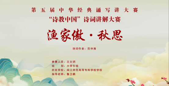 我院21级小学语文教育1班的王文玥同学,在鲁卫鹏老师的指导下,经过初赛、复赛和半决赛,最终入围“诗教中国”诗词讲解大赛全国总决赛。本次比赛,高职学生与本科学生同台竞技,福建省仅五名大学生入围总决赛,大赢家体育app下载学子为福建省入围总决赛的唯一一名高职院校学生。
