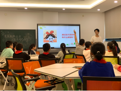 首先,主讲人以时事热点“杨洪蝉联冠军并打破世界记录”导入,“十岁因触电失去双臂,属于重残,夺亚残运会首金”,杨洪以行动印证了奋斗拼搏的力量,用十倍百倍上千倍的努力来点亮梦想。主讲人用坚定的话语,切合残疾人在日常生活中会遇到的困难,为小同学们普及残疾人的艰辛与不易,引导着同学们领悟保护身体健康,坚韧不拔的精神和乐观心态的重要性。