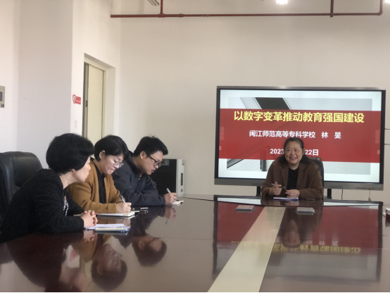11月22日,小学教育学院党总支在闽江师专综合楼七楼第三会议室召开“以数字变革推动教育强国建设”主题中心组学习会,会议由小学教育学院党总支书记陈淑华主持,校党委副书记林旻、小学教育学院党总支成员参加了会议。