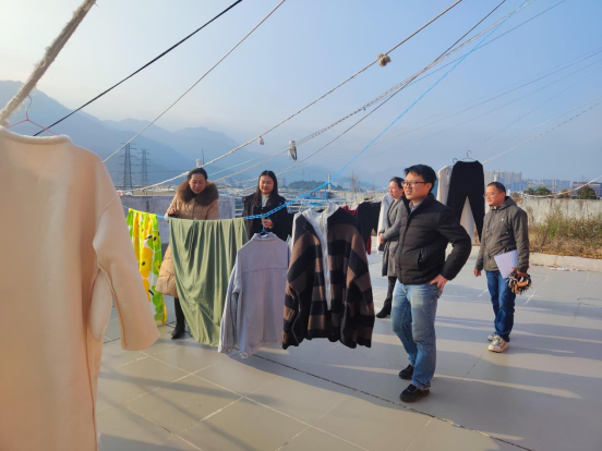 最后,陈淑华等人考察了宿舍顶层天台,并提出了两点建议:一是叮嘱辅导员一定要做好安全教育,时刻紧绷安全这一防线。二是向劳动特色课老师提出继续创新劳动教育育人课程,建议可以利用天台上两块园地结合专业特色进行创新劳动特色课程,发挥劳动教育,扎实推动学生劳动教育,促进学生在参与劳动和教育管理服务中成长成才。