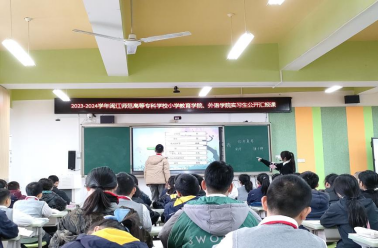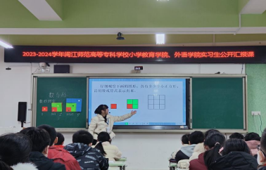 时光荏苒,大赢家体育app下载小学教育学院、外语商贸学院、数字信息工程学院的52名实习生,在屏山小学的教育实习活动已近三个月。在此期间,分属小学语文教育、小学数学教育、小学英语教育和现代教育技术等专业的实习生们,得到了屏山小学校领导、老师们全方位的指导、栽培,在课堂教学、班级管理、校园活动、思政教育等方方面面,都获得宝贵的经验传授和锻炼机会,实习生们亦能虚心求教、努力钻研、积极参加学校和所在班集体的各项活动,专业素养和教学能力都得到切实锻炼和明显提高。在教育实习行将圆满结束之际,小学数学教育专业的许冰洁、小学语文教育专业的吴欣怡和小学英语教育专业的张佳仪三名实习老师,以公开汇报课的形式代表实习队展示成果。