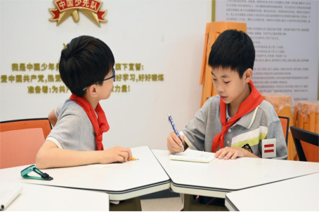 为深入贯彻落实党的二十大精神,全面落实立德树人根本任务,促进德育工作的专业化、规范化和实效化,切实做好同学们的思想道德建设,使同学们具备良好的道德修养与心理状态,小学教育学院22级入党积极分子、23级共青团员带领闽江师专附小的同学们于2024年5月20日在少先队队部室组织开展以“润物无声育德行,德育启航向未来”为主题的闽师少年说活动。
