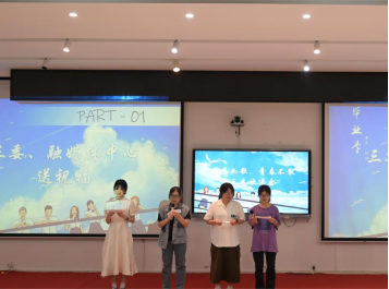 随后,活动进入了祝福环节。团委副书记李香敏、学生会主席张灿及自律会会长黄雅萱以及融媒体中心主任苏晓敏代表三委上台致辞,他们向21级毕业的三委学长学姐们表达了最真挚的祝福和感谢,感谢他们在校期间的付出和贡献,并祝愿他们在未来的人生道路上能够一帆风顺、前程似锦。