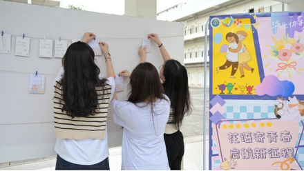 6月13日在旗山校区广场开展青春寄语、互动拥抱活动。师生利用明信片寄语未来,“愿我们一路繁花相送,前程似锦!”“青春永不散场,梦想在此启航!”一句句真挚的话语承载着深深的情感。随后的抽奖环节更是将活动氛围推向高潮。每一份奖品都蕴含着学弟学妹们满满的祝福,抽到奖品的毕业生们脸上洋溢着惊喜与感动。这些祝福仿佛是温暖的力量,激励着他们勇敢前行。