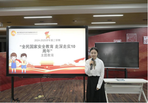 本次公开课以《全民国家安全教育走深走实10周年》为主题,由2023级小学教育2班林燃馨授课。授课过程中,林燃馨充分发挥多媒体资源优势,将国家安全知识通过动画片段的穿插解析与通俗易懂的语言阐释,引导学生系统认知国家安全的丰富内涵。并采用小组合作探究的模式,组织学生以团队协作形式探讨国家安全守护路径。最后以有趣的国家安全手势舞作为收尾,进一步深化学生对国家安全理念的情感认同。
