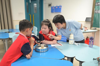 绘本阅读教室里,老师用趣味互动的方式,带领小朋友们发现阅读的快乐,让想象力的种子在书香中发芽。与此同时,科普研学组的同学们正在趣味实验和互动讲解中探索时间的奥秘。